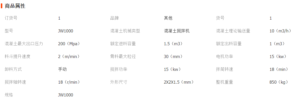 JW平口混凝土攪拌機(jī)主要參數(shù):