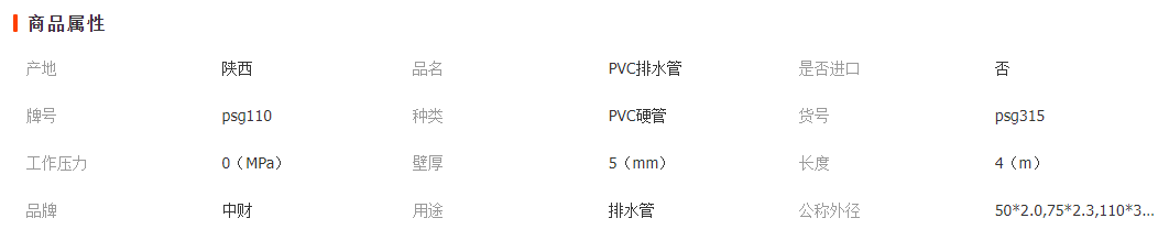 中財PVC排水管 pvc室外排水管泄水管 橋梁下水專用管dn110
