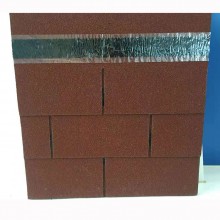 5、對于屋面與垂直墻的交接,也可采用踏步泛水,在兩面交接處先裝邊長為200mm×200mm彎折成直角的金屬泛水,100mm搭接在屋面彩色瀝青油氈瓦初始層上并固定,另外100mm鋪貼到墻面,然后外鋪第一屋彩色瀝青油氈瓦,正好將其屋面部分全部覆蓋,接著再鋪第二層金屬泛水及第二屋彩色瀝青油氈瓦,依次類推,在垂直墻面上再用長200mm,500mm寬的一邊伸入墻體并用瀝青膠或水泥沙漿密封。